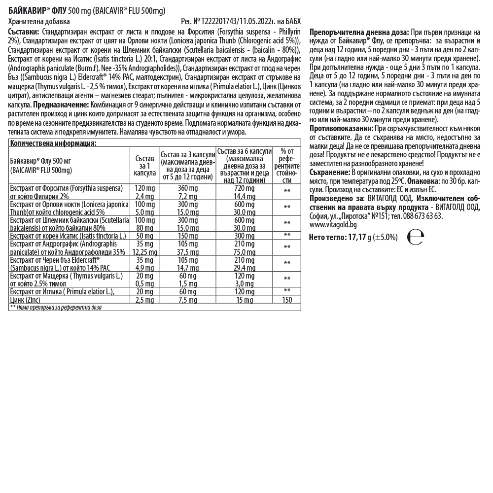 Байкавир Флу – при простуда и сезонни вируси, 30 капсули