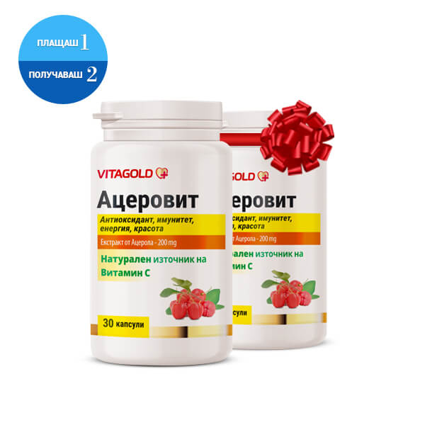 Плащаш 1, получаваш 2! Ацеровит (ацерола) – източник на натурален витамин C, 30 капсули